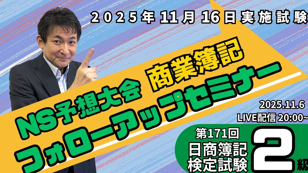 2025年11月に実施される第171回日商簿記2級の出題予想をネットスクール講師が公開致します。ライブ配信にてワンポイント講義も実施予定です。ぜひご参加ください。