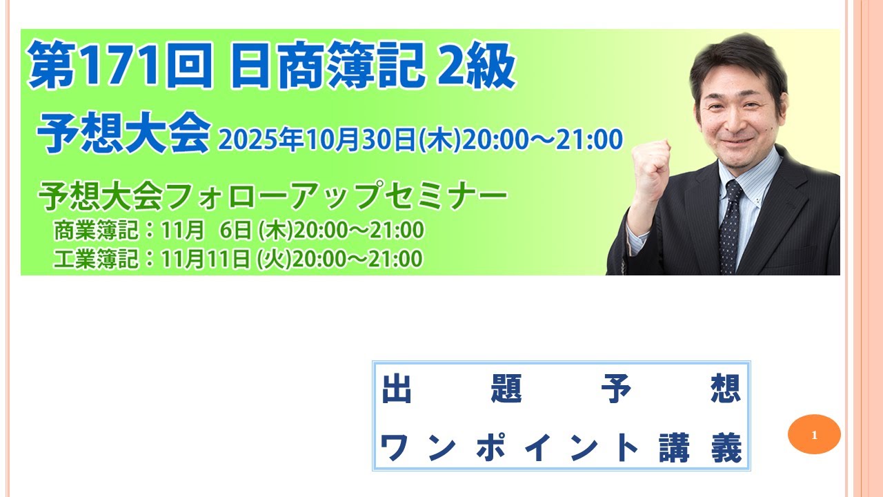 2025年11月16日実施予定の第171回日商簿記1級試験の出題予想を中心にワンポイント講義を実施いたします。受験予定の方はぜひご確認ください。
