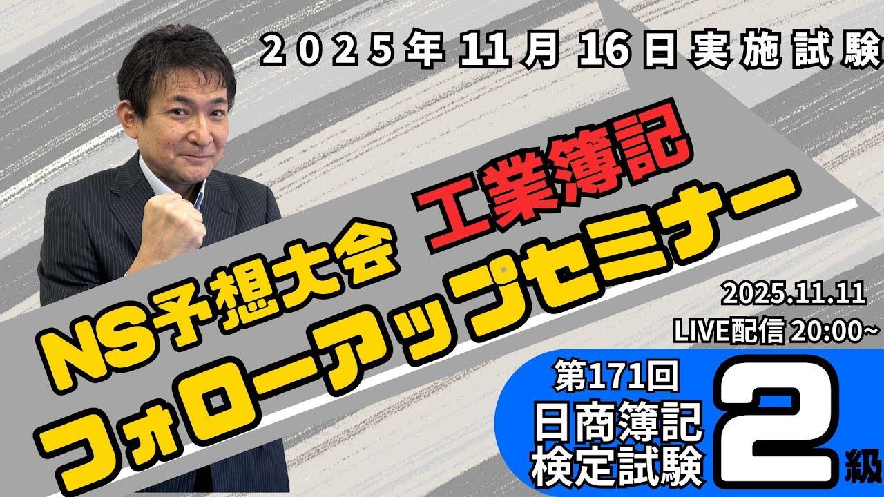 【2025年11月】第171回日商簿記2級 予想大会フォローアップセミナー 工業簿記