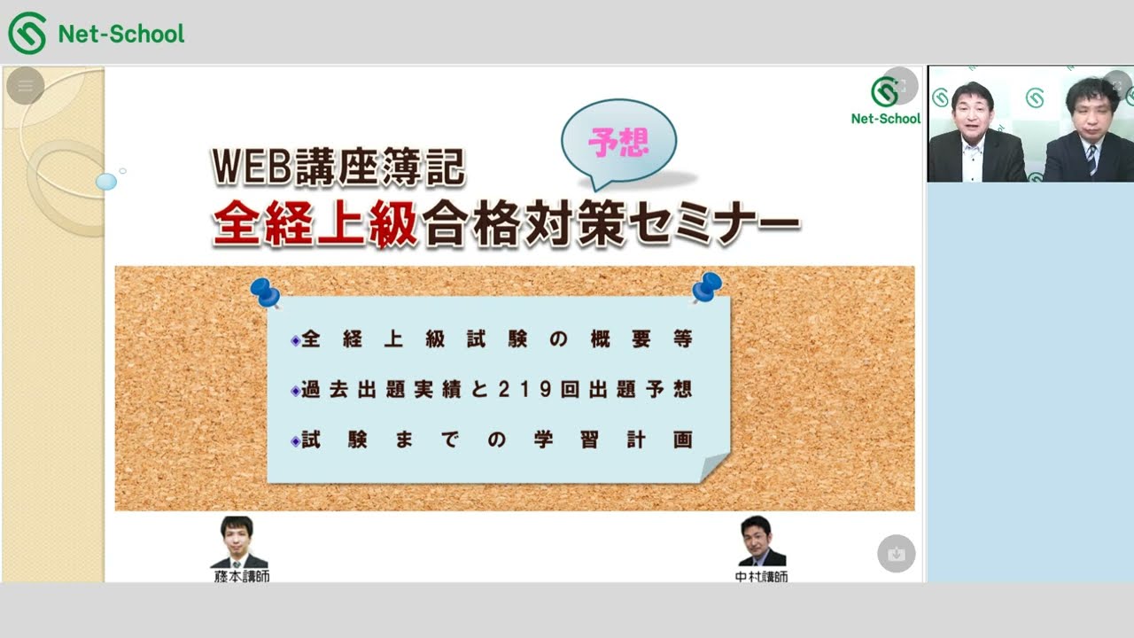 ネットスクール全経簿記上級WEB講座では「第219回全経簿記上級WEB講座 合格対策セミナー」として、出題予想動画を公開。